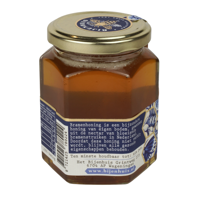 Bramenhoning is een bijzondere honing van eigen bodem, gewonnen uit de nectar van bloeiende bramenstruiken in Nederland. Deze honing staat bekend om zijn zachte structuur, aromatische geur en licht fruitige ondertoon.