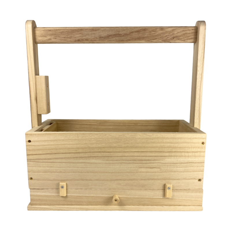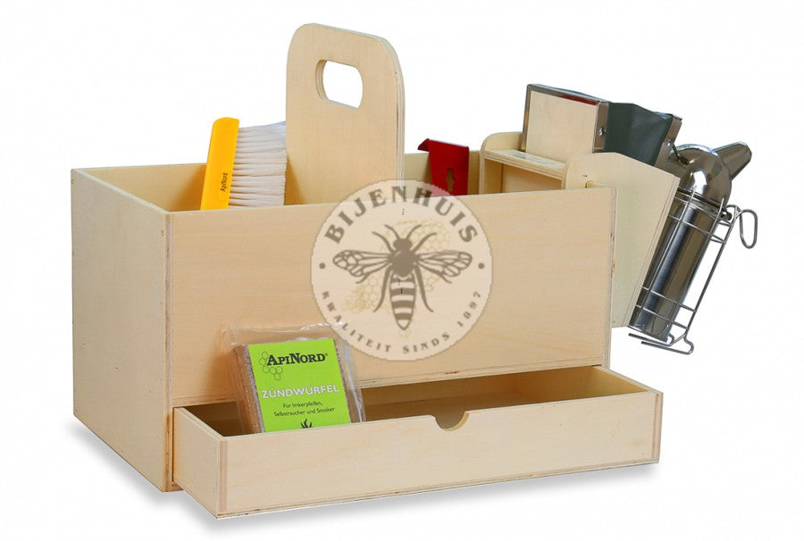 Vervaardigd uit duurzaam hout en voorzien van een handige draaggreep, zodat je jouw imkergereedschap gemakkelijk meeneemt naar de bijenstand.