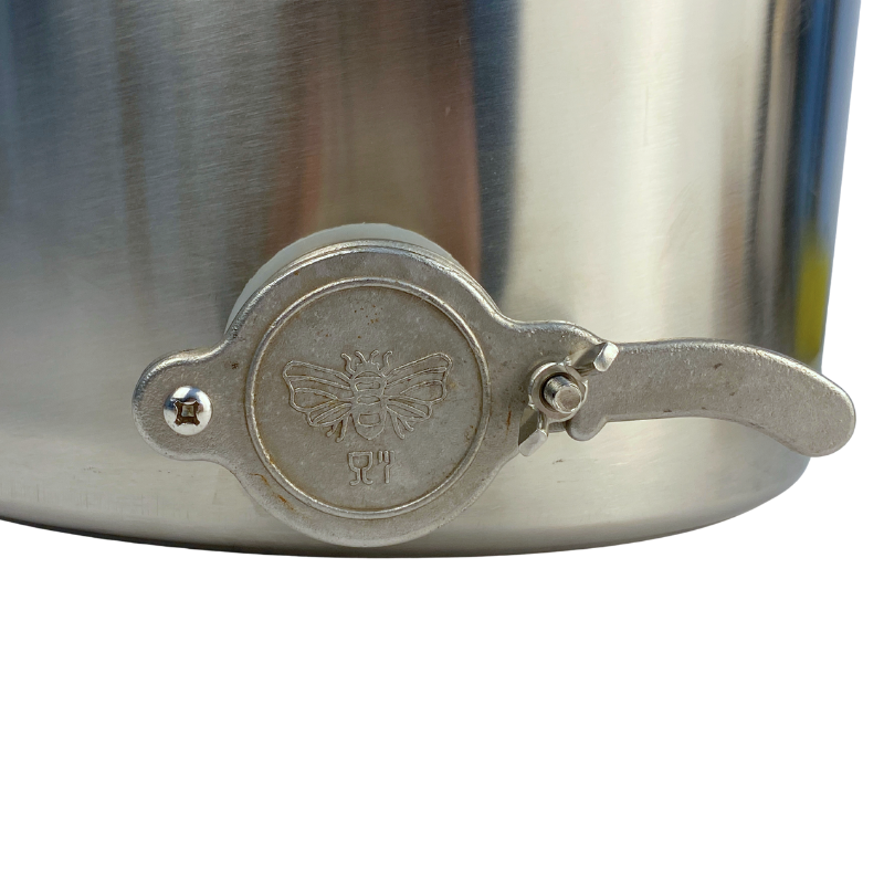 Roestvrij stalen aftapvat met aluminium deksel. Ideaal formaat voor op de tafel. Met hevelsluiting voor een optimale sluiting van het vat. Met RVS-snijkraan.