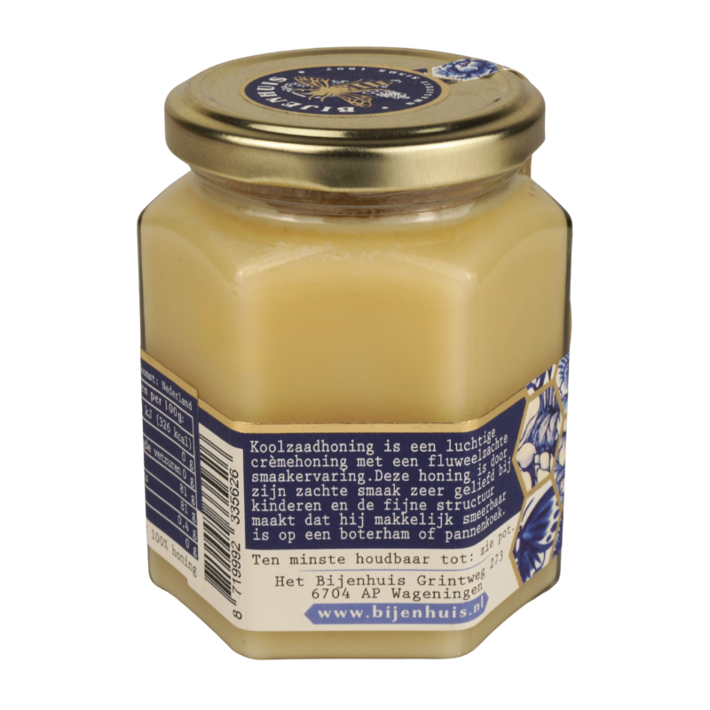 Deze koolzaadhoning komt van onze geselecteerde imkers uit Nederland.